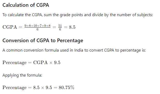 - With a linear multiplier: Percentage = CGPA × Multiplier (e.g., 9.5).